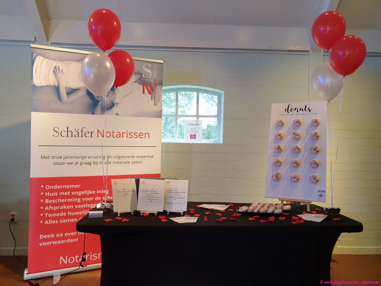 Niet alleen taarten maar ook cupcakes of donuts met een logo of persoonlijke boodschap doen het goed op recepties, beurzen, openingen en jubilea. Het kan eventueel zelfs verstuurd worden